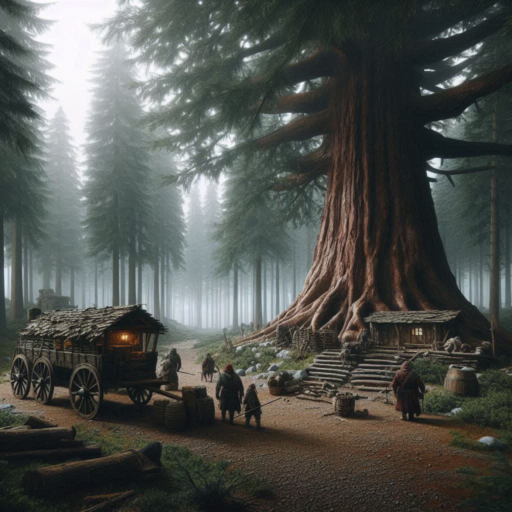 “Snap! Crunch… Crunch.. CRUNCH!” I stopped. Someone or something was very near. I sought protection next to tree and peeked out the side. Roughly 100 yards away stood a massive old cedar tree. A shack was built into the inside of the tree. Scattered amongst the area were figures in leather armor wielding weapons. They looked rather unfriendly.