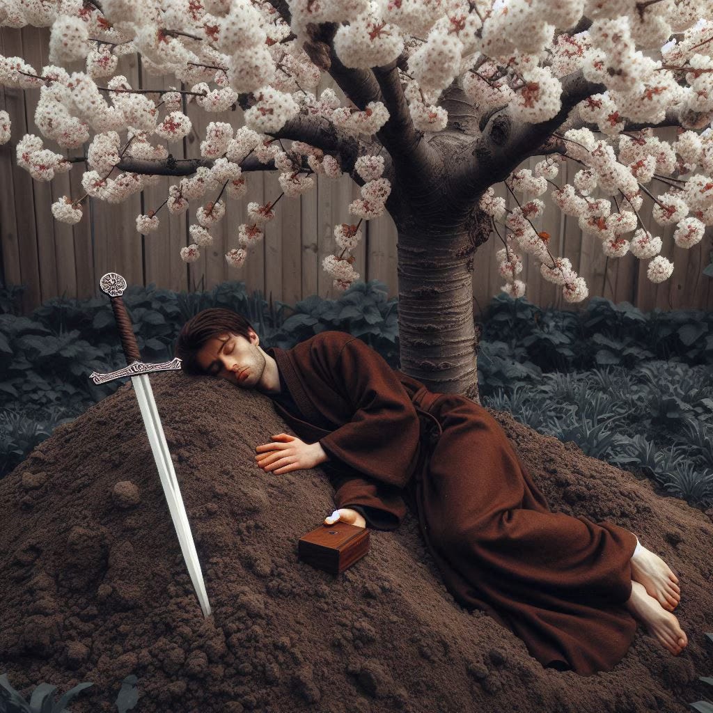 “Yes, this sword and box are his… I guess, they were his.” He looked up at the tree, observing the beautiful white blooms and said, “Hey, you know i’m not much of an adventurer. I enjoy farming and I want to help build up this village again. I know my grandfather would like that and my grandmother could use the help.”